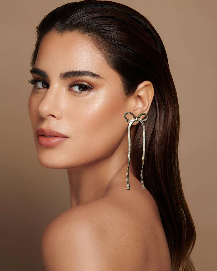 Emerald Grace Bow Dangle Earrings ā Sleek Ribbon-Inspired Statement Jewelry