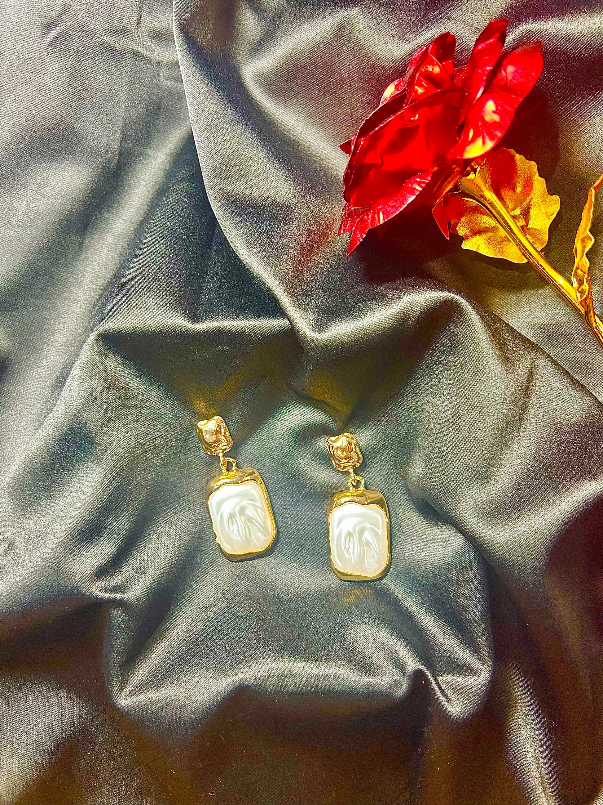Glossy Pearl White Gold-Tone Drop Earrings – Bold & Elegant